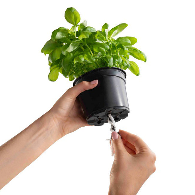 Fonctionne sur le principe de capillarité. Vos plantes reçoivent exactement la bonne quantité d'eau. Insérez les deux filaments hydroponiques dans les trous de pots. Remplissez d'eau jusqu'au niveau visible sur le flotteur et c'est prêt !
